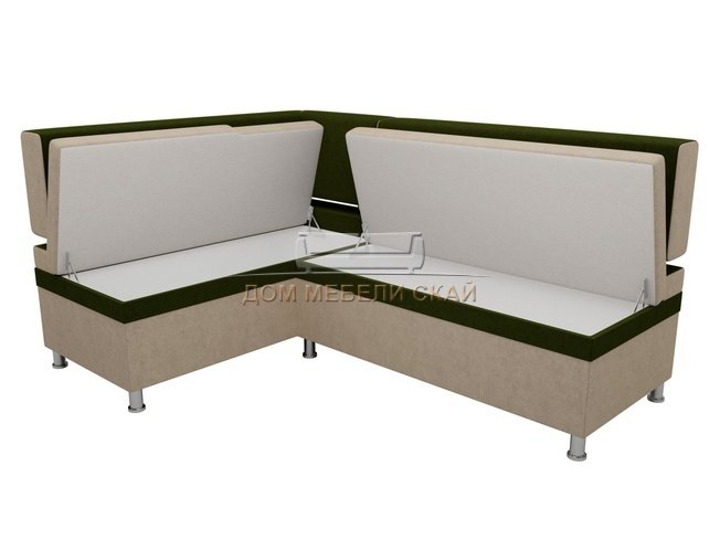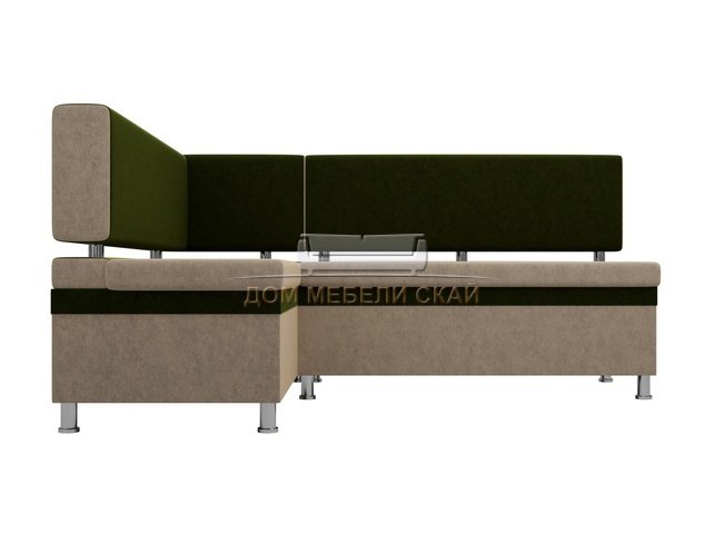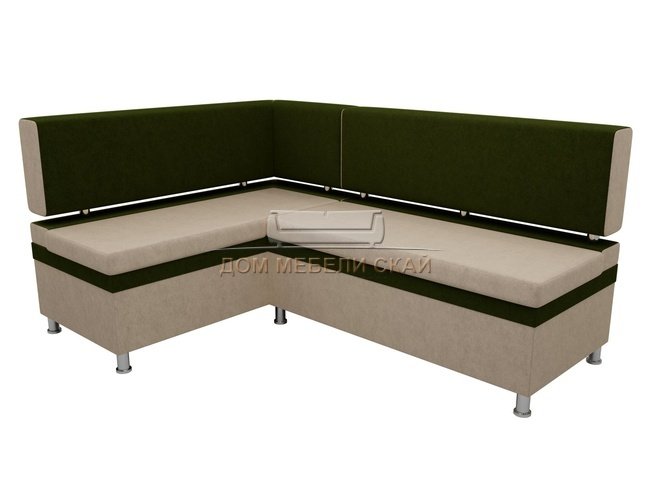 Кухонный угловой диван левый Стайл, бежевый/зеленый/микровельвет