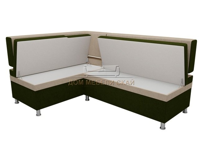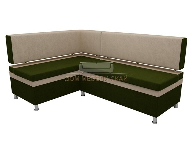 Кухонный угловой диван левый Стайл, зеленый/бежевый/микровельвет