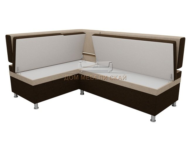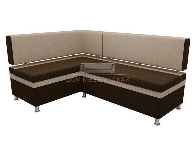 Кухонный угловой диван левый Стайл, коричневый/бежевый/микровельвет