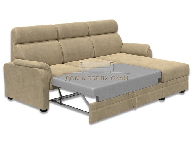 Угловой диван-кровать Омега 2-1, бежевый велюр