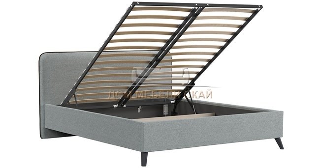 Кровать двуспальная Миа 160х200 с ПМ, купер 18 жаккард серый/кант лайт 10 велюр коричневый