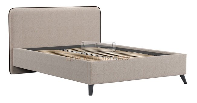 Кровать полутороспальная Миа 140х200, купер 03 жаккард бежевый/кант лайт 10 велюр коричневый