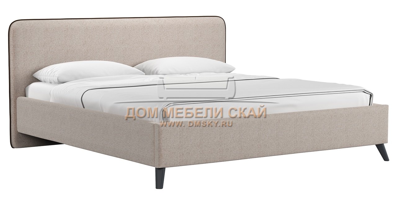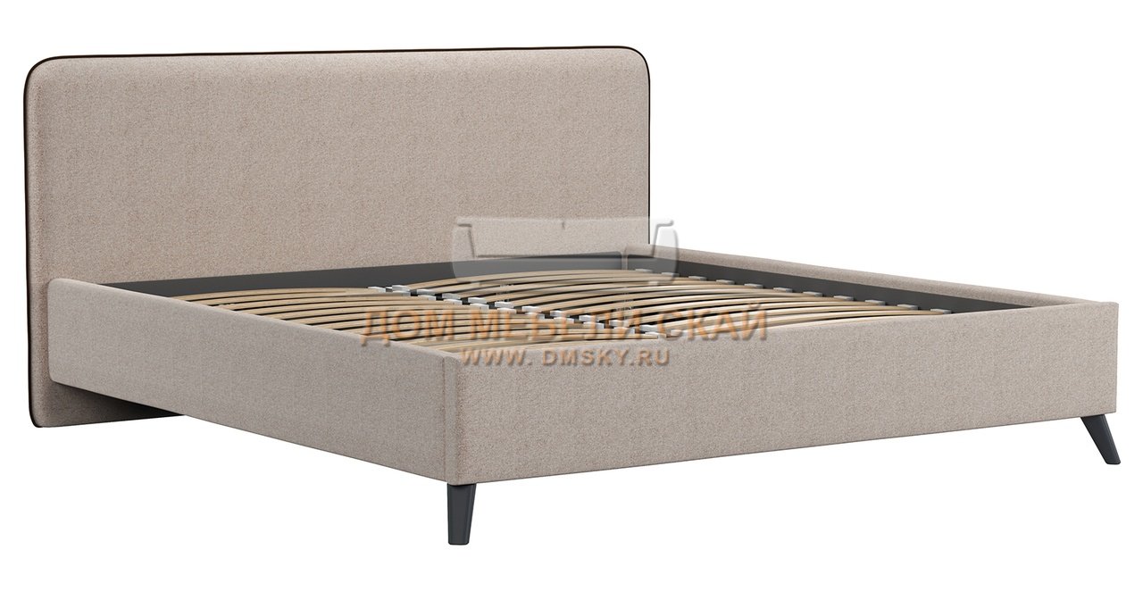 Кровать двуспальная Миа 180х200, купер 03 жаккард бежевый/кант лайт 10 велюр коричневый