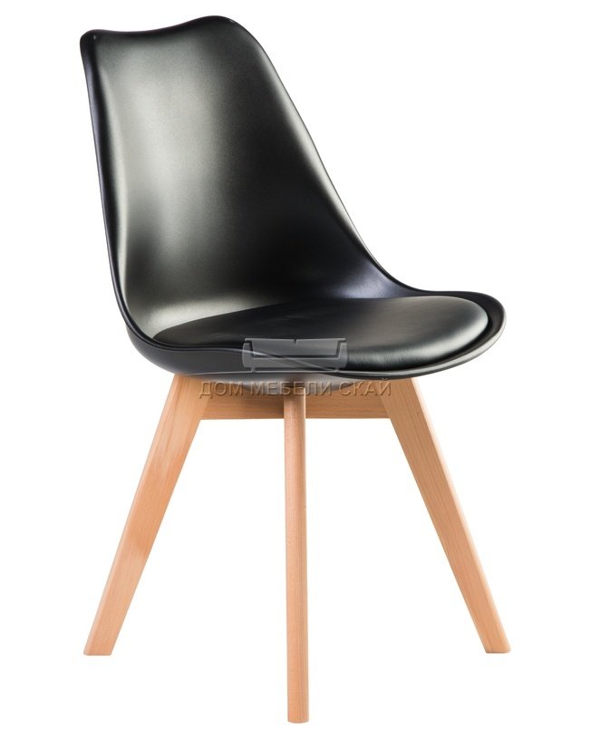 Стул JERRY SOFT, экокожа черного цвета/ножки светлый бук