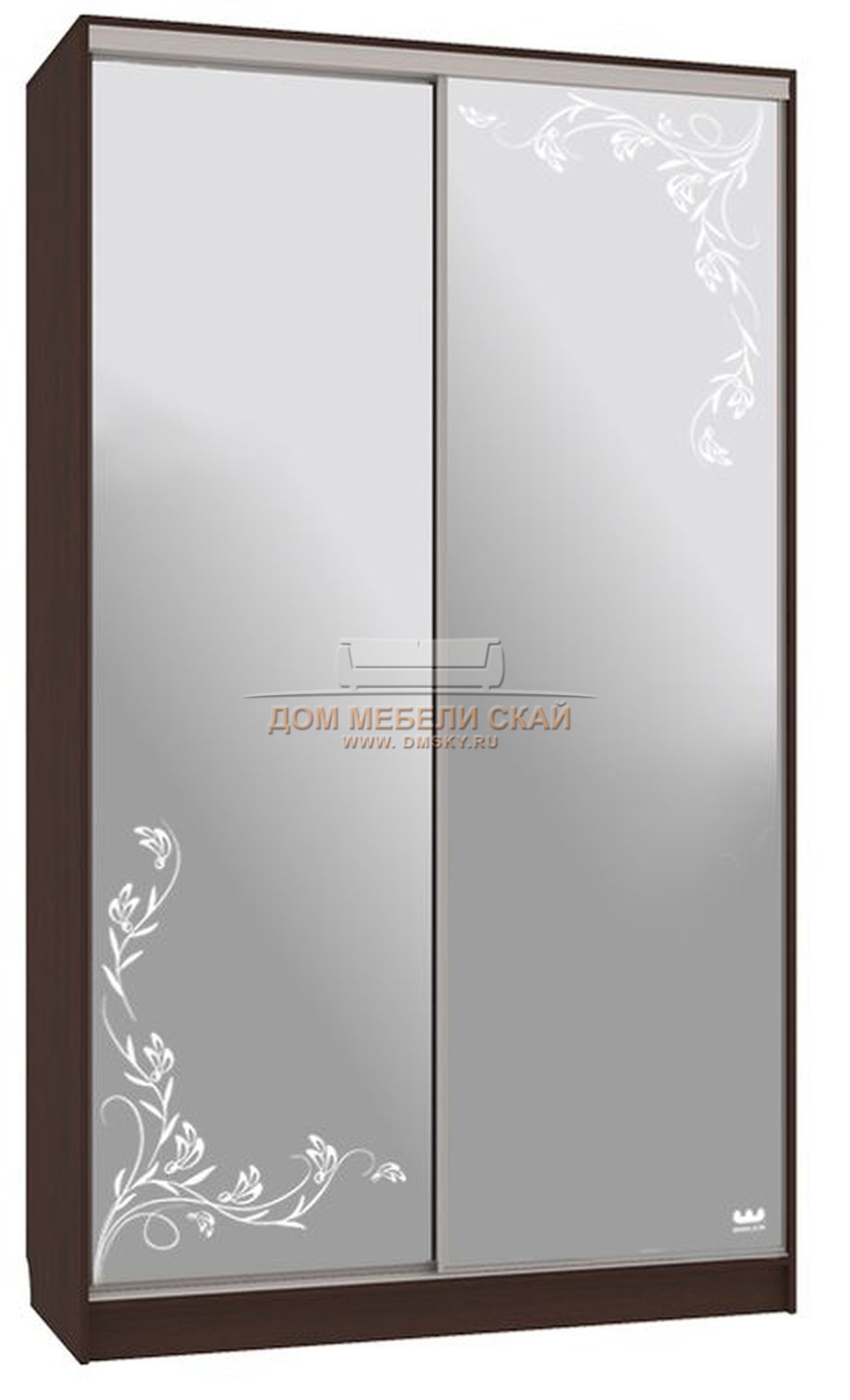 Шкаф-купе 2-дверный зеркальный Рио 4-600, венге/цветы 2