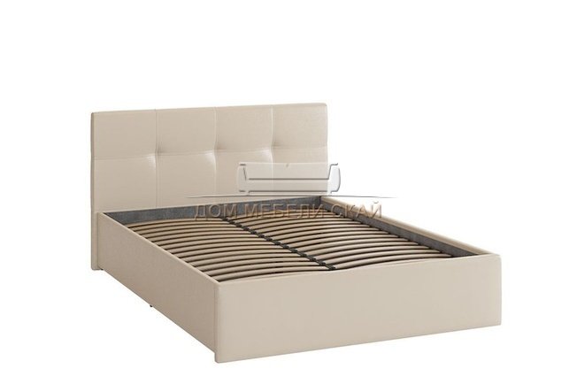 Кровать полутороспальная 140x200 Куба, кремовая экокожа