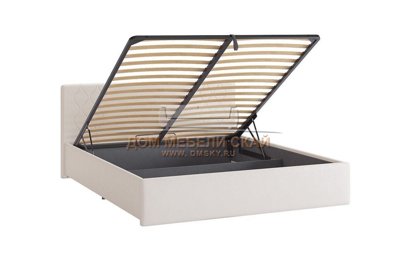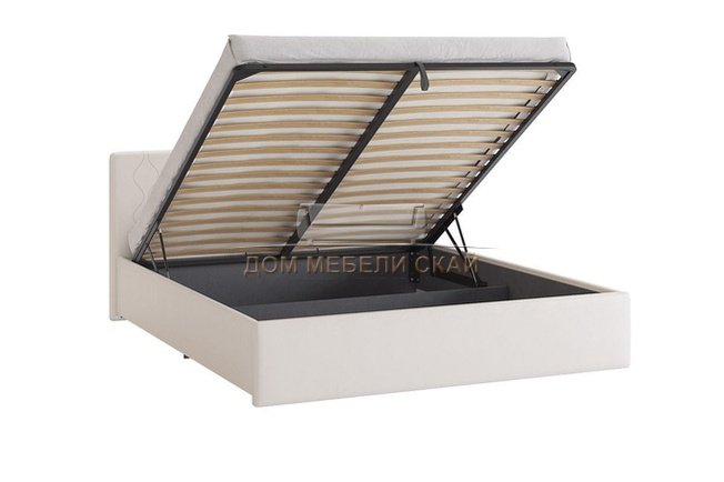 Кровать двуспальная 160x200 Моника с подъемным механизмом, белая экокожа