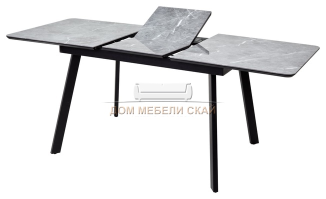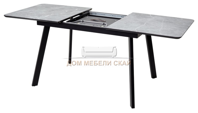 Стол обеденный раздвижной Аруба 140, серый мрамор скорпио/черный каркас
