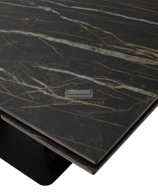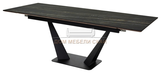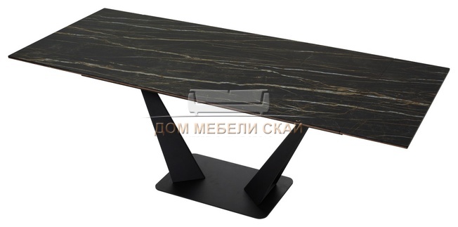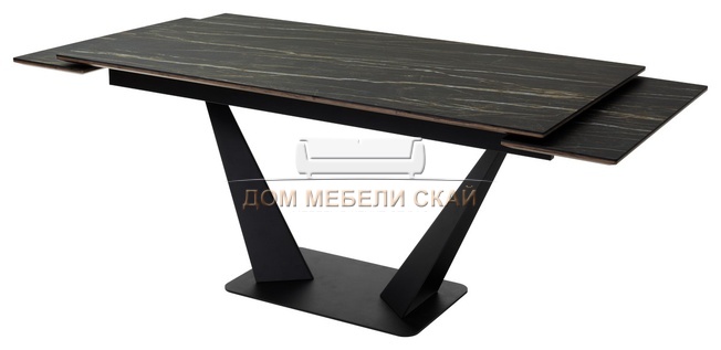 Стол обеденный раскладной Ниагара 160, обсидиан керамика/черный каркас