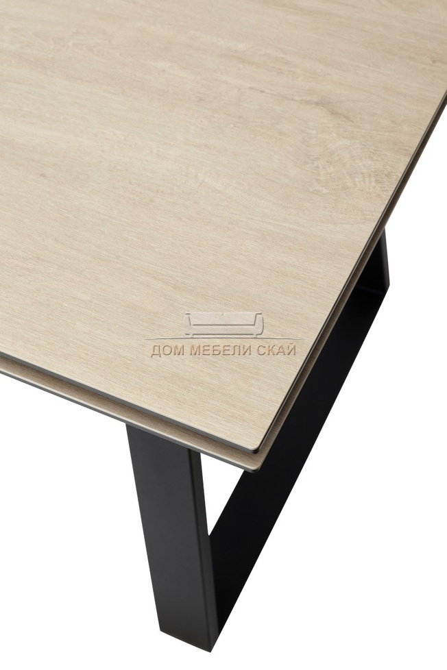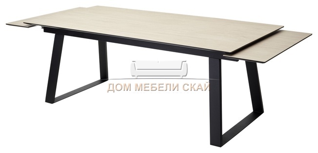 Стол обеденный раскладной Франк 200, дуб коричневый керамика/черный каркас
