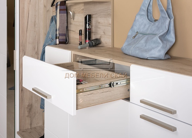 Прихожая Лайн с комодом, дуб серый крафт/белый глянец