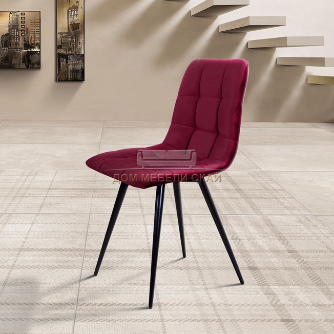 Стул Uno, бархат красного цвета 16/чёрный каркас