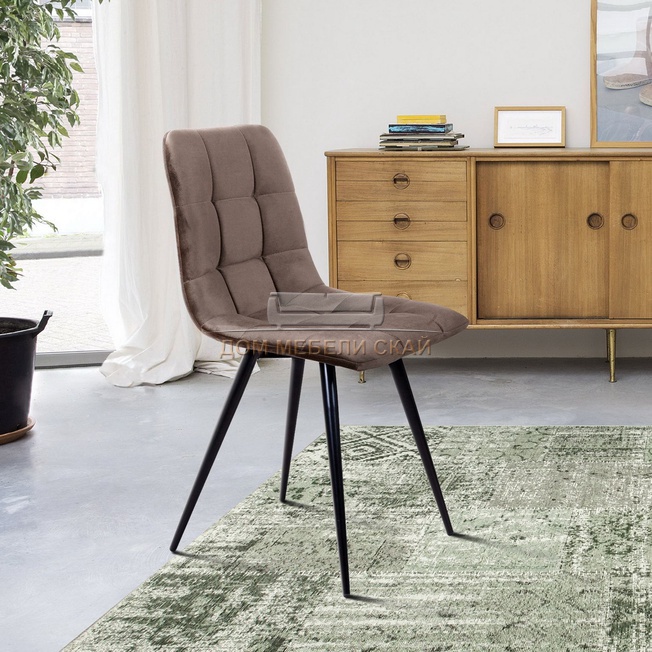 Стул Uno, бархат пепельно-бежевого цвета 25/чёрный конус
