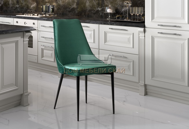Стул Oliver, бархат зелёного цвета 19/ чёрный каркас