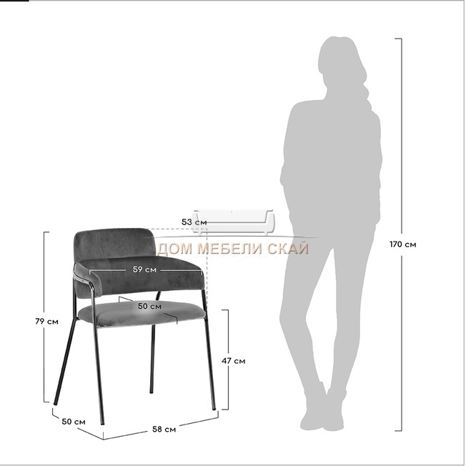 Стул Napoli, велюровый серого цвета/черные ножки