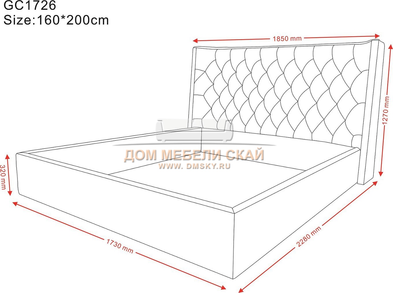 | Высота изголовья | 127 см | |||