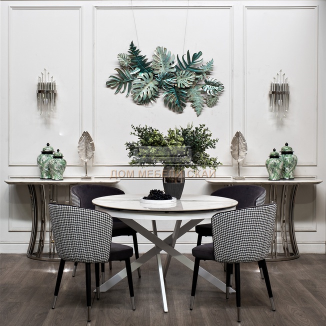 Стол обеденный круглый раскладной 83MC-1907DT WH, белый мрамор
