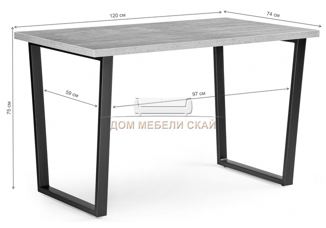 Стол обеденный Лота Лофт 120, бетон/черный матовый