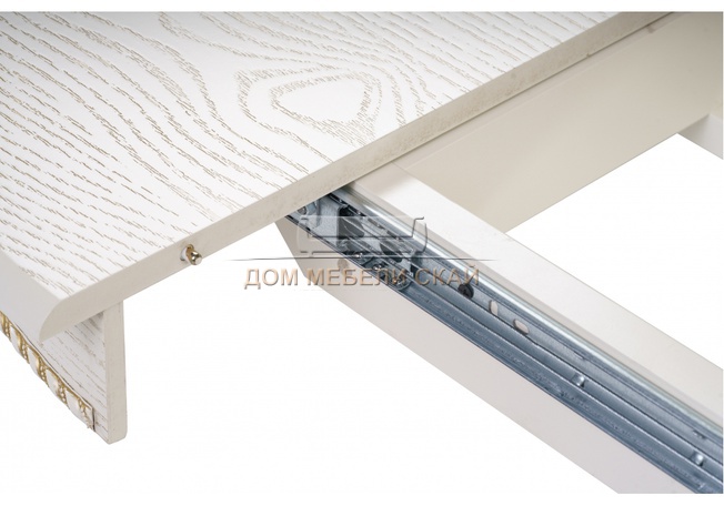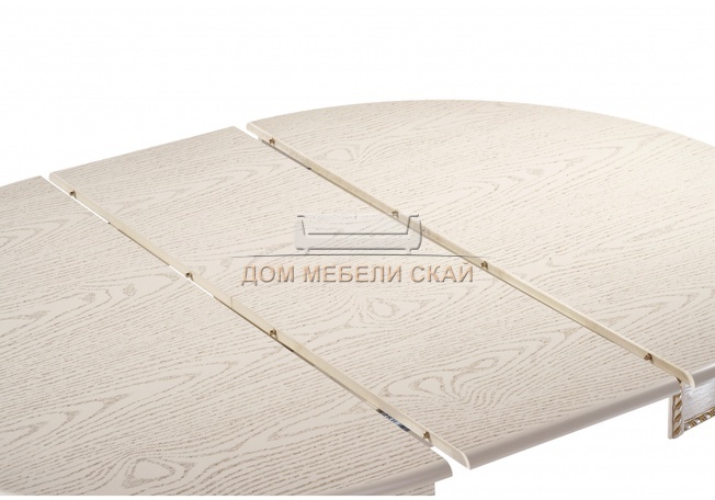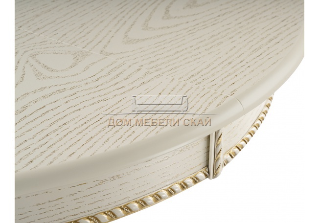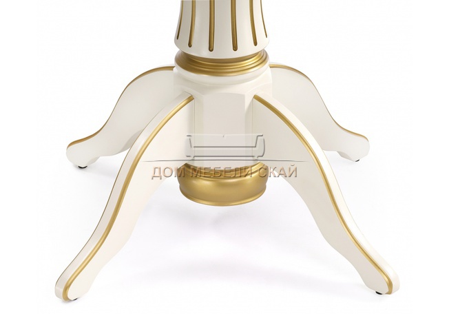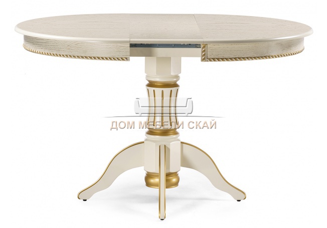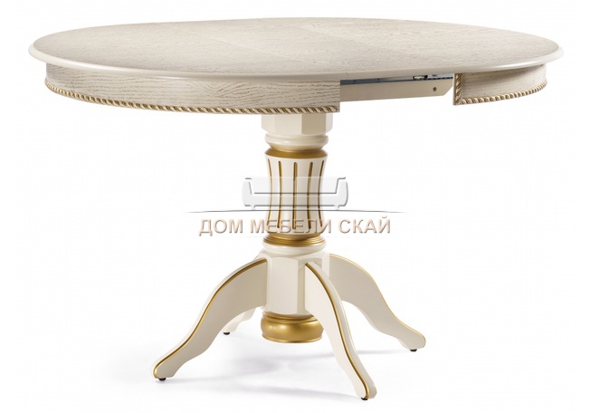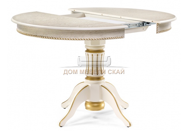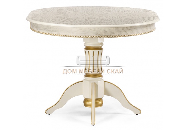 Стол обеденный круглый раздвижной Павия 100 см, кремовый с золотой патиной