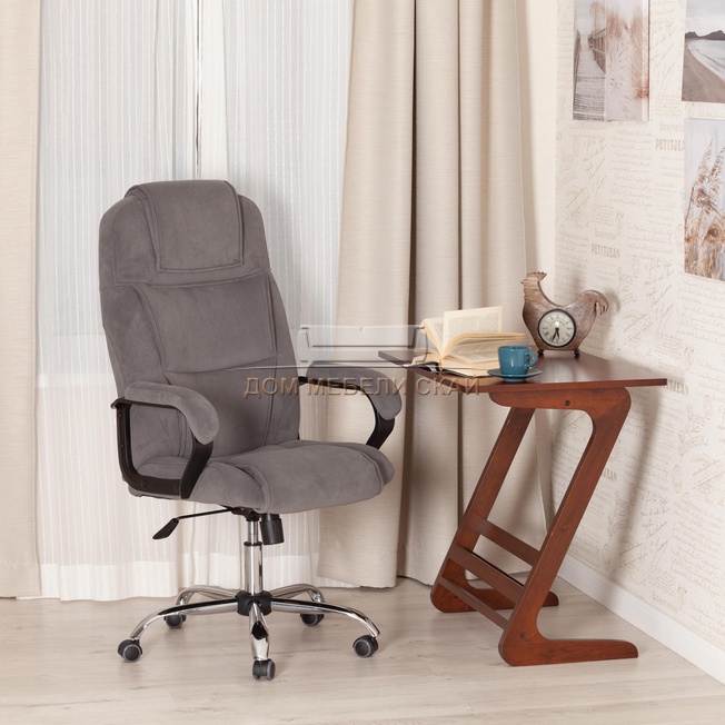 Кресло офисное Бергамо Bergamo хром, флок серого цвета 29
