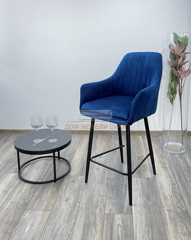Полубарный стул Роден, велюровый синего цвета Premier 22