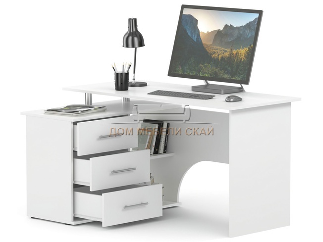 Стол компьютерный с тумбой левый КСТ-09, белый (3,0 MБ)