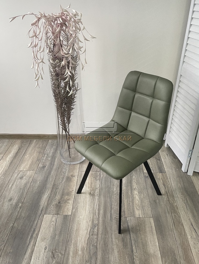 Стул CHILLI SQUARE, экокожа серо-зеленого цвета эвкалипт HK017-22/черный каркас