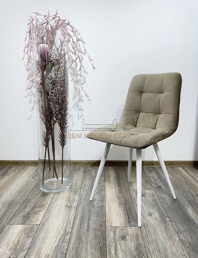 Стул CHILLI-Q, велюровый светло-коричневого цвета латте #25/белый каркас