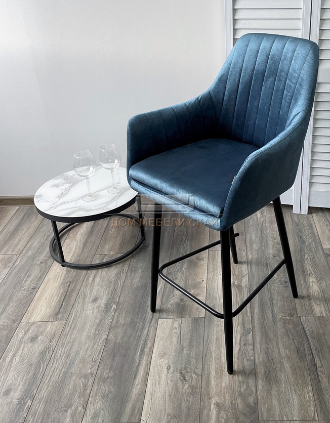 Полубарный стул Роден, велюровый пепельно-синего цвета Blitz 19