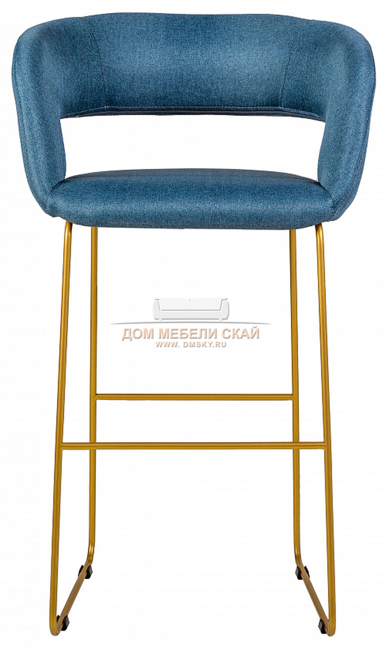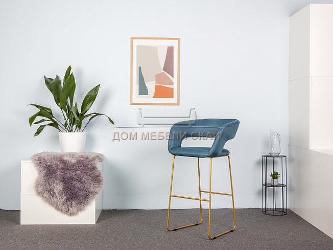 Стул-кресло полубарное Walter, рогожка синего цвета/линк золото