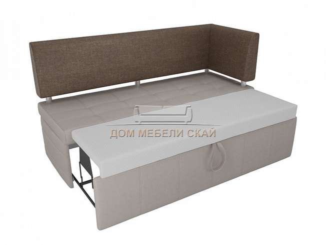 Кухонный диван Стоун с правым углом, бежевый/коричневый/рогожка