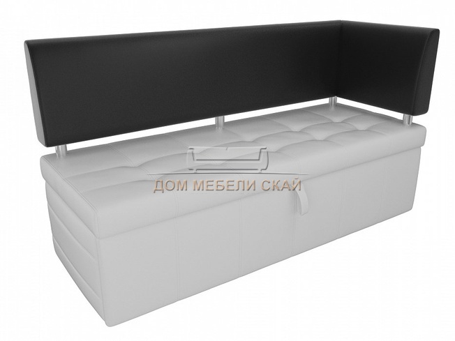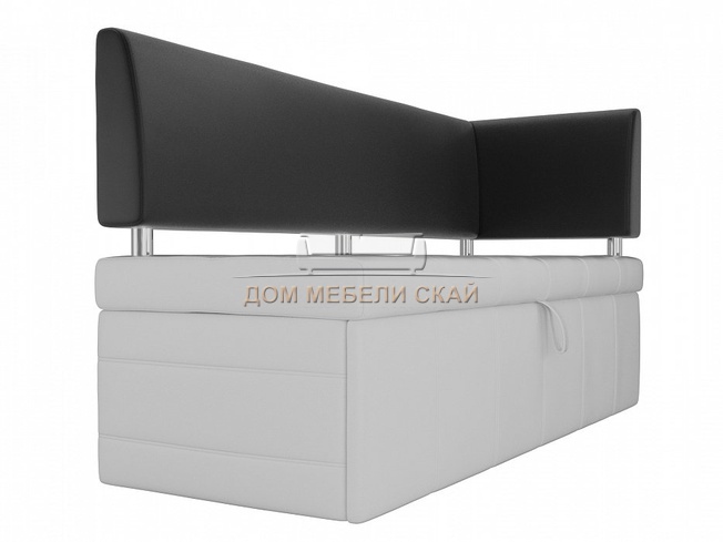 Кухонный диван Стоун с правым углом, белый/черный/экокожа