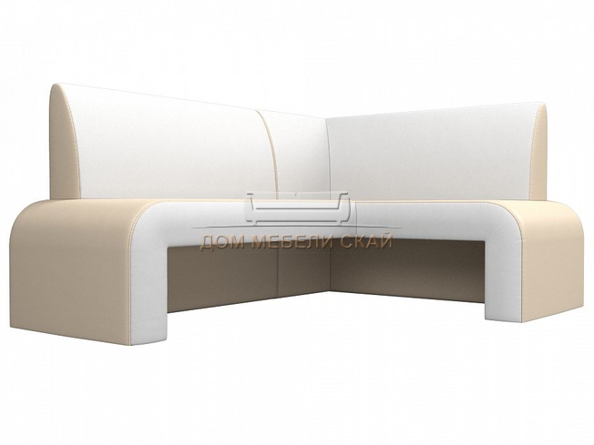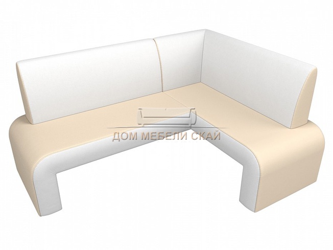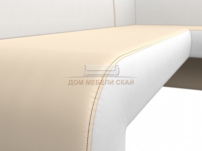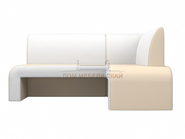 Кухонный угловой диван правый Кармен, бежевый/белый/экокожа