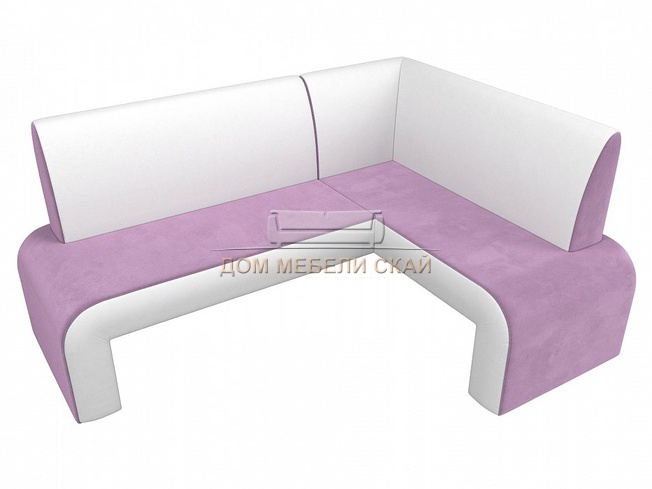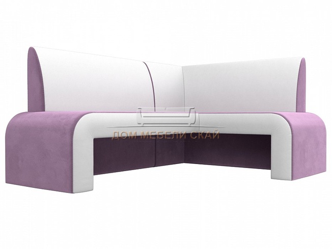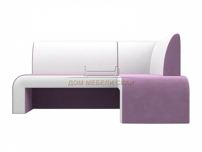 Кухонный угловой диван правый Кармен, сиреневый/белый/велюр/экокожа