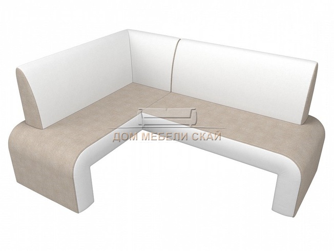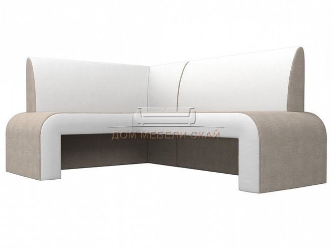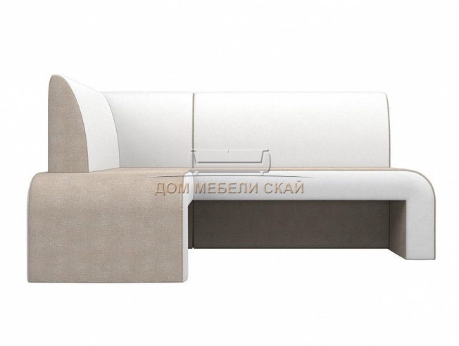 Кухонный угловой диван левый Кармен, бежевый/белый/рогожка/экокожа