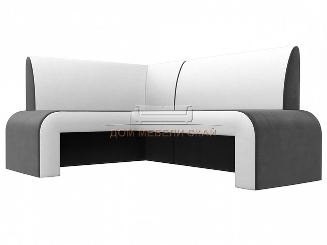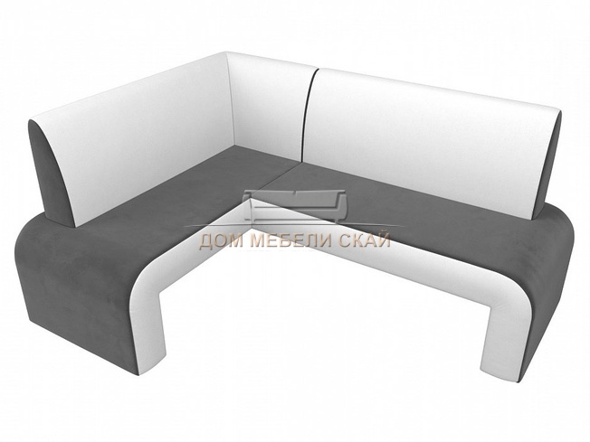 Кухонный угловой диван левый Кармен, серый/белый/велюр/экокожа