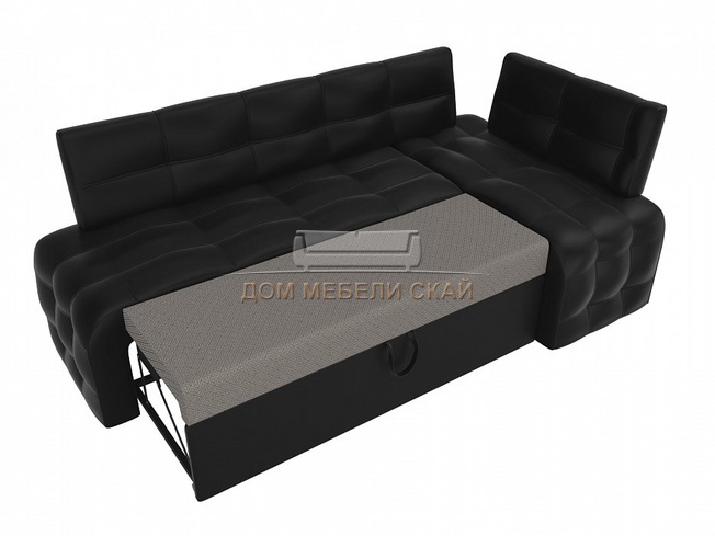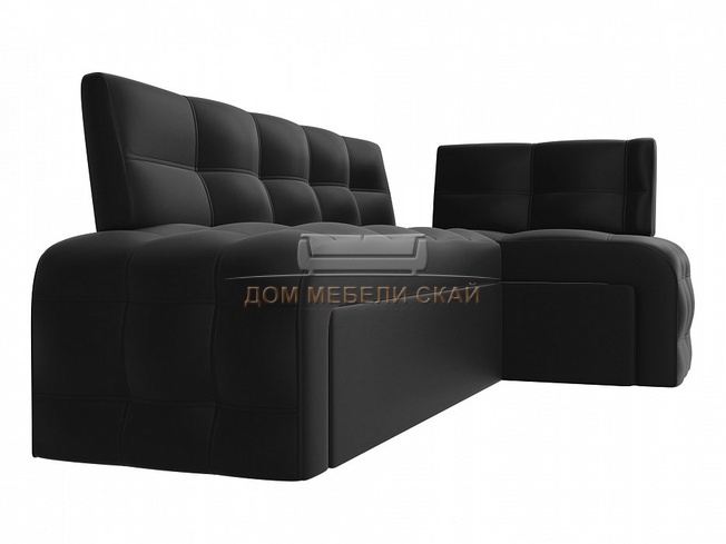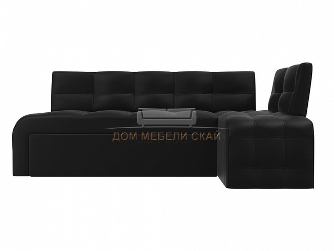Кухонный угловой диван правый Люксор, черная экокожа