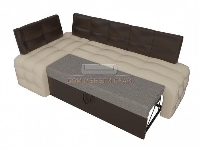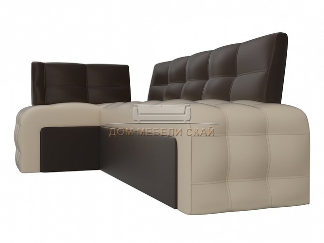 Кухонный угловой диван левый Люксор, бежевый/коричневый/экокожа