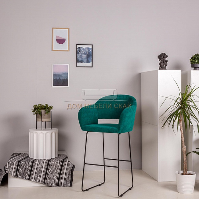 Кресло полубарное Oscar, велюровый изумрудного цвета/линк черный