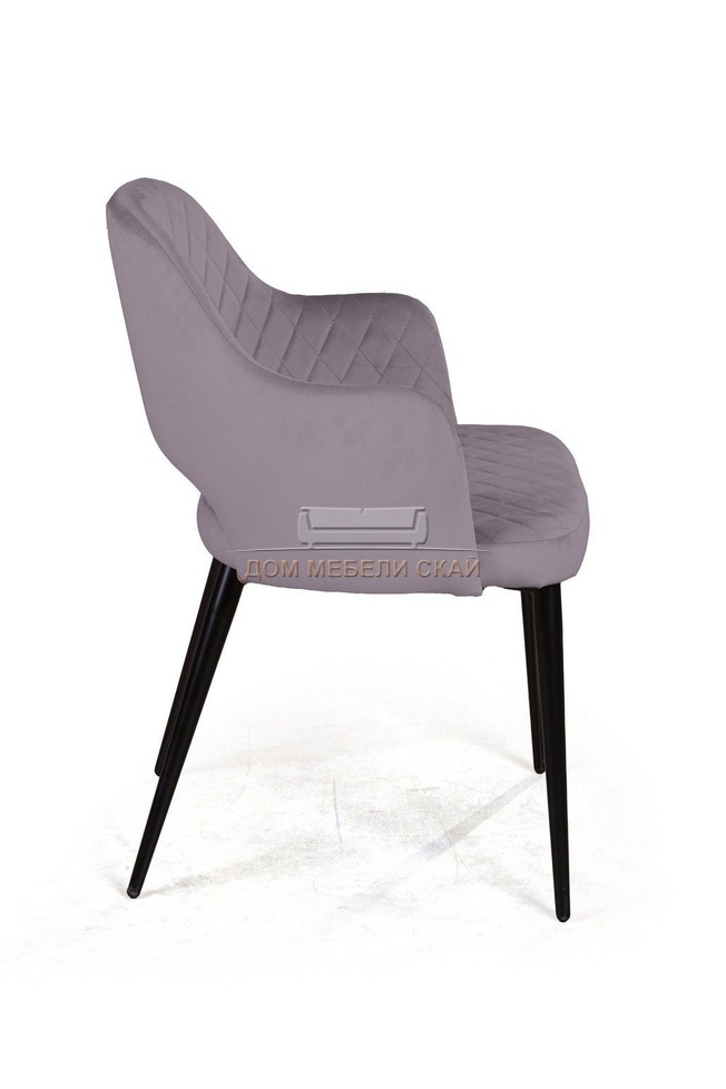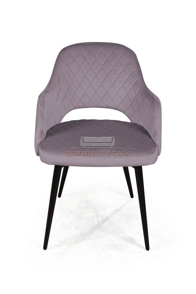 Стул с подлокотниками William, бархат светло-серого цвета 26/ черный конус/ромб