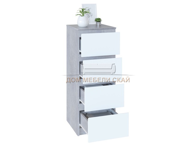 Комод 4 ящика Т-4Р, бетон/белый