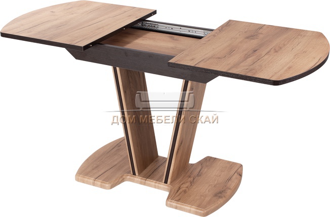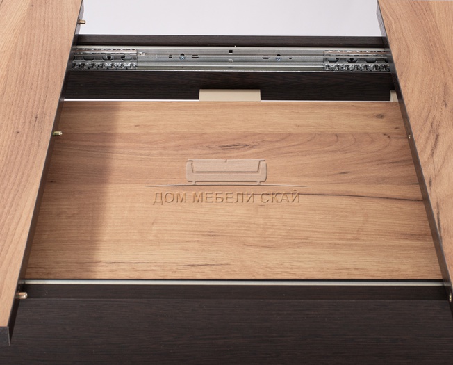 | Механизм раскладки стола | синхронно-раздвижной, вставка цельная, шириной 37 см, выполнена из ЛДСП под цвет столешницы, извлекается из основания вручную | |||