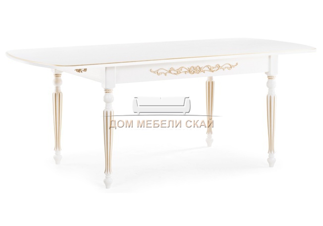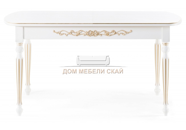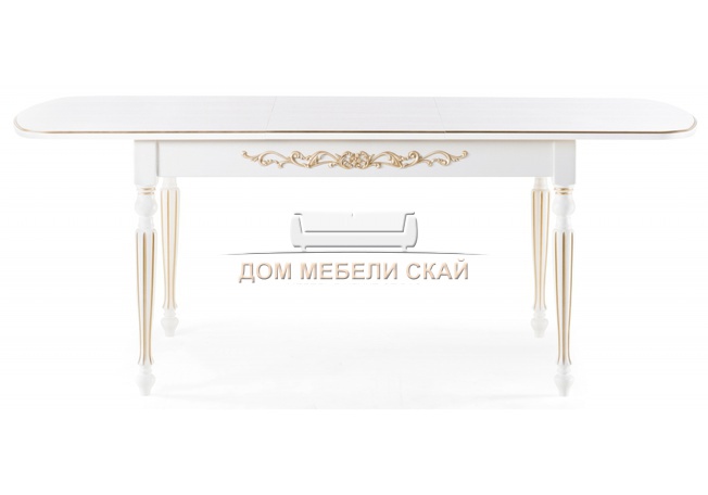 Стол обеденный раскладной Бевье, молочный/патина золото
