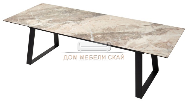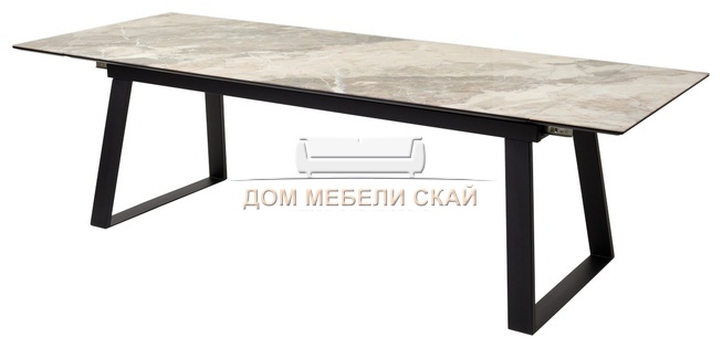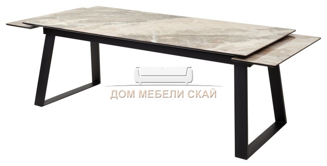 Стол обеденный раскладной Франк 200, бежевый мрамор каталония стекло/черный