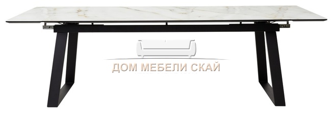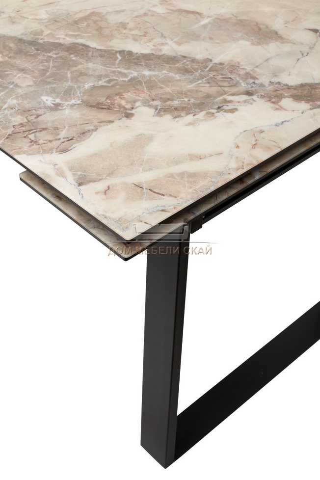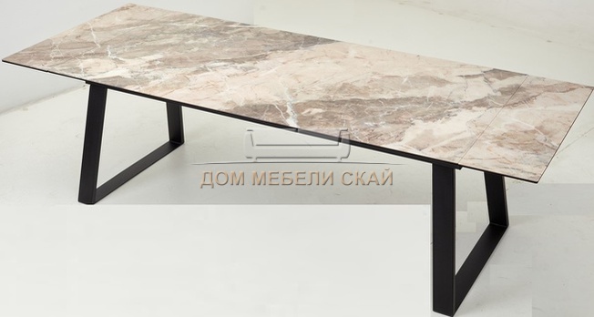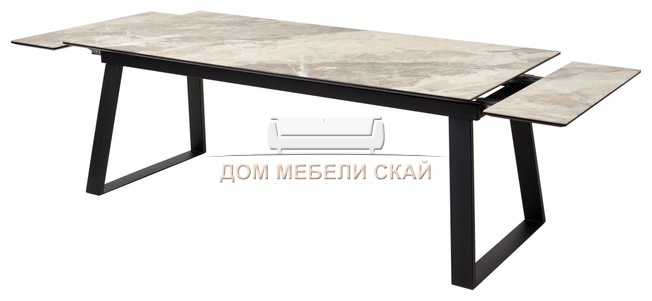 Стол обеденный раскладной Франк 200, бежевый мрамор каталония стекло/черный (135,9 KБ)