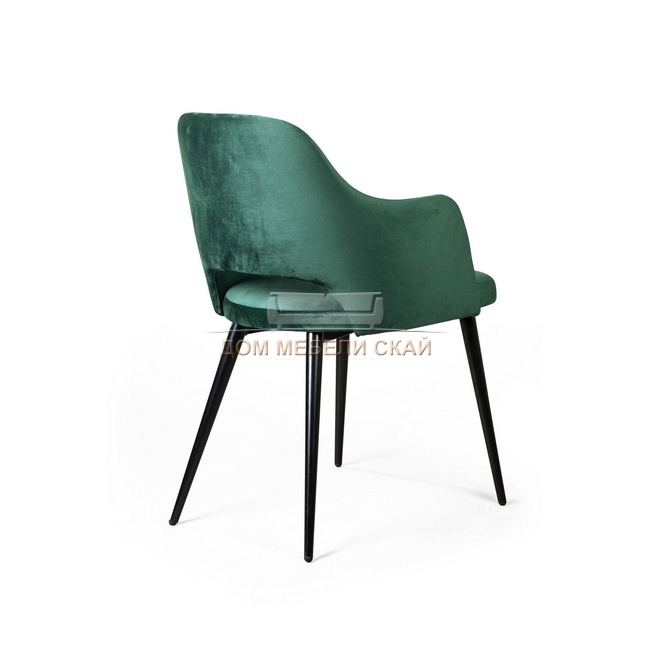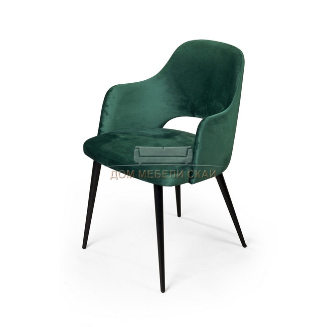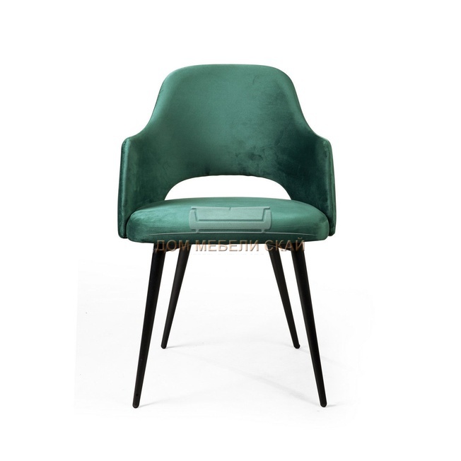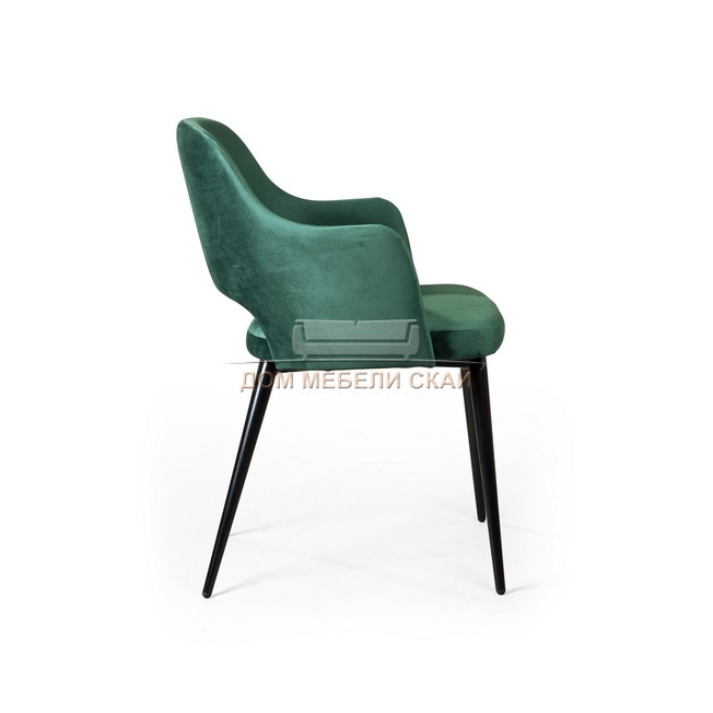 Стул с подлокотниками William, бархат зелёного цвета 19/черный конус