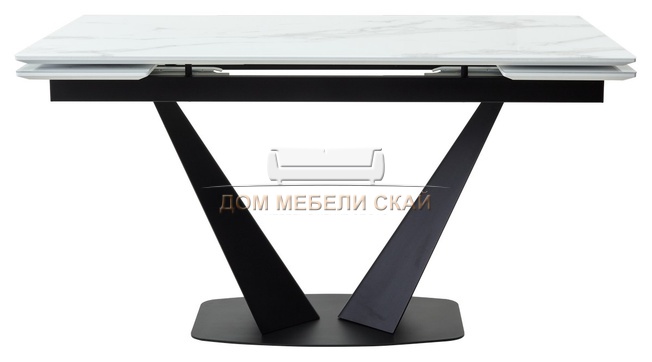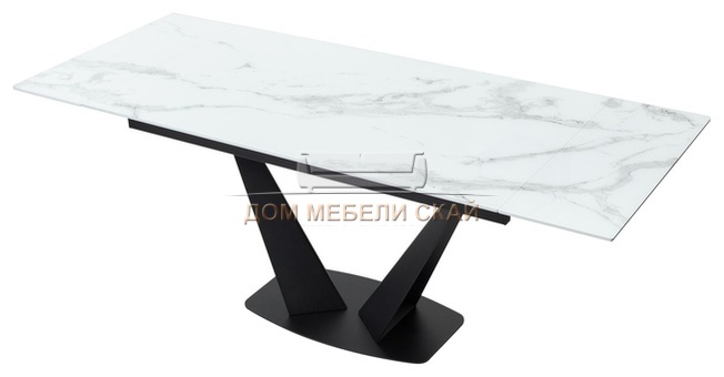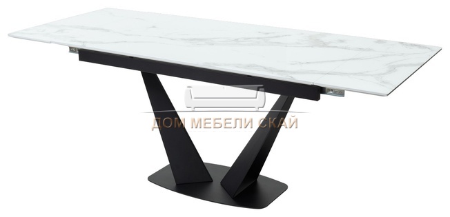 Стол обеденный раскладной Ниагара 160, белый мрамор/стекло/черный