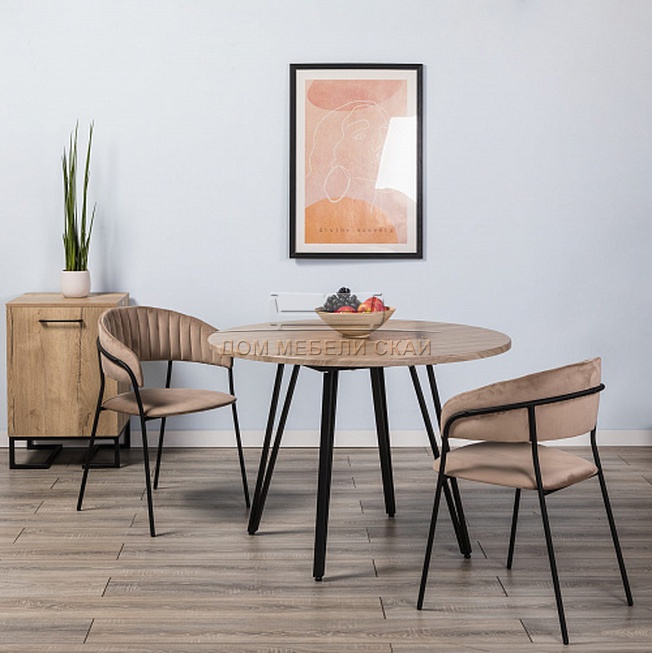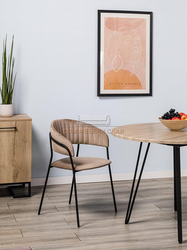 Стул-кресло Portman, бархат бежевого цвета Beige/черный