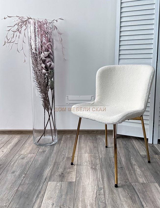 Стул RIYA, искусственный мех белого цвета UF992-01 teddy/золотой каркас