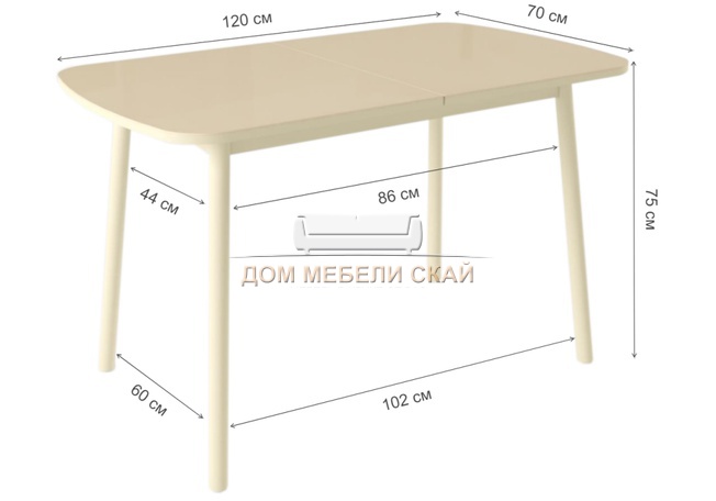 | Примечание | растояние между ножками: низ- 102x60 см, верх- 86x44 см | |||